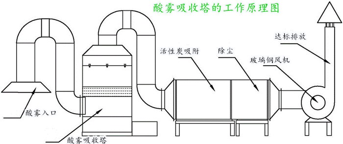 1、廢氣經由排氣管道進入酸霧吸收塔內部;